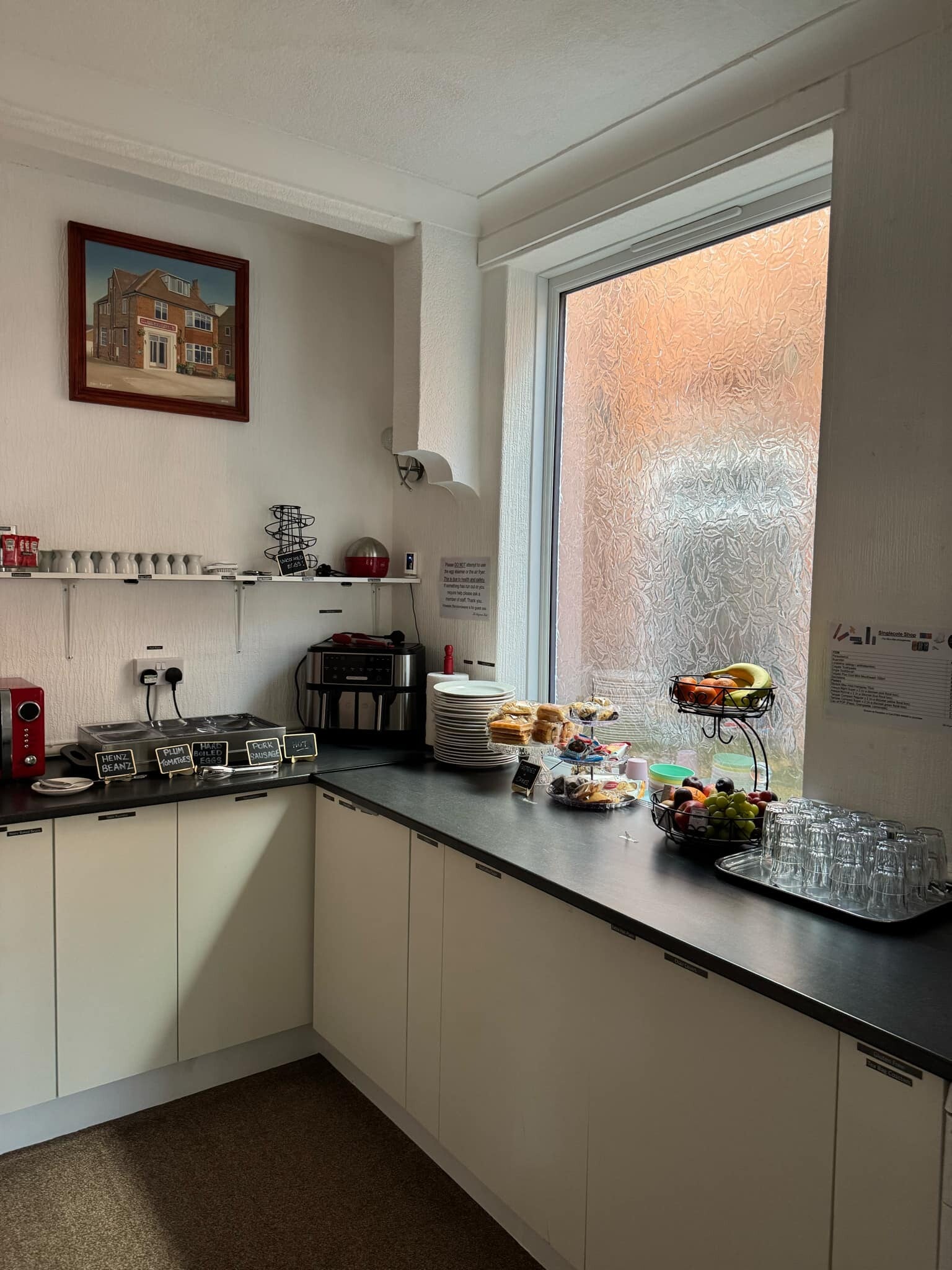 If you would like something hot there is a microwave available. You will find baked beans, sausage and hard-boiled eggs. There are also porridge pots to choose from.